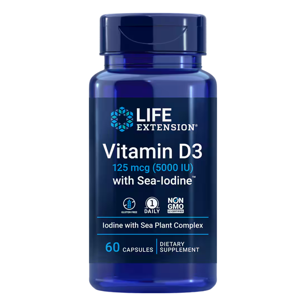 Vitamina D3 5000ui com Iodo Marinho 60 Cápsulas Life Extension